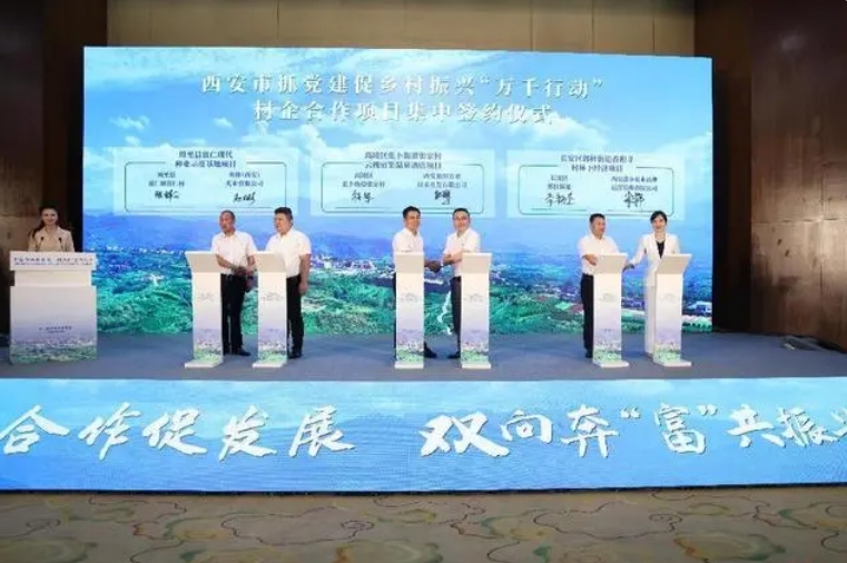 【乡村振兴陕西网】摘录:为进一步宣传展示西安乡村风貌和资源禀赋,深化巩固村企合作共建阶段性成效,8月7日,西安市抓党建促乡村振兴“万千行动”村企合作项目集中签约活动在周至县举行。